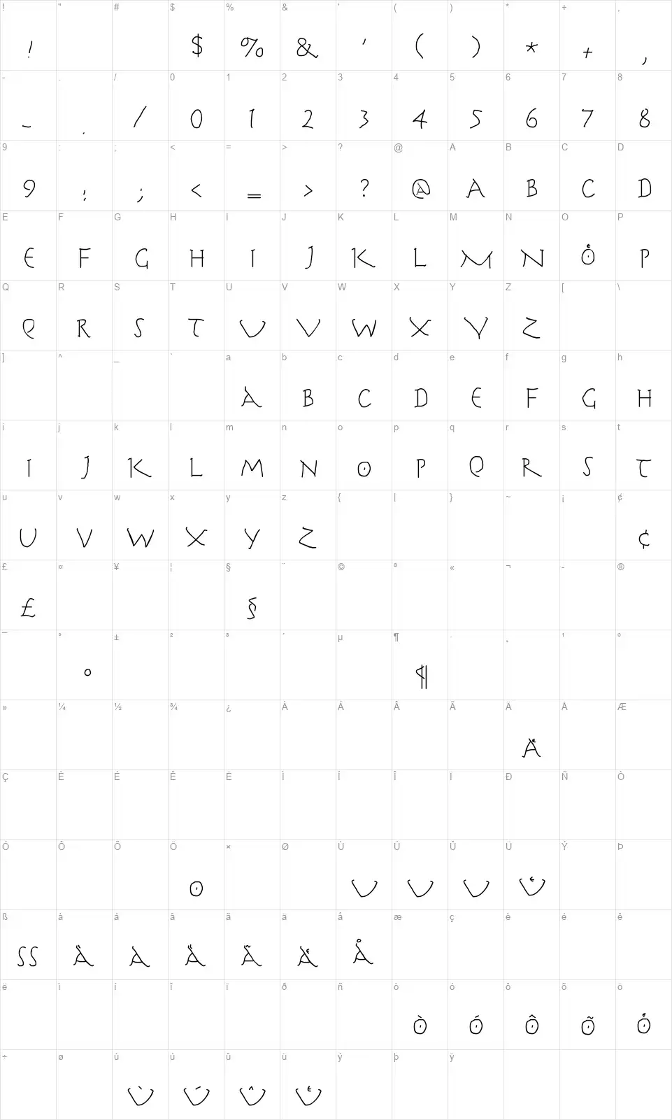 - Mappa dei caratteri