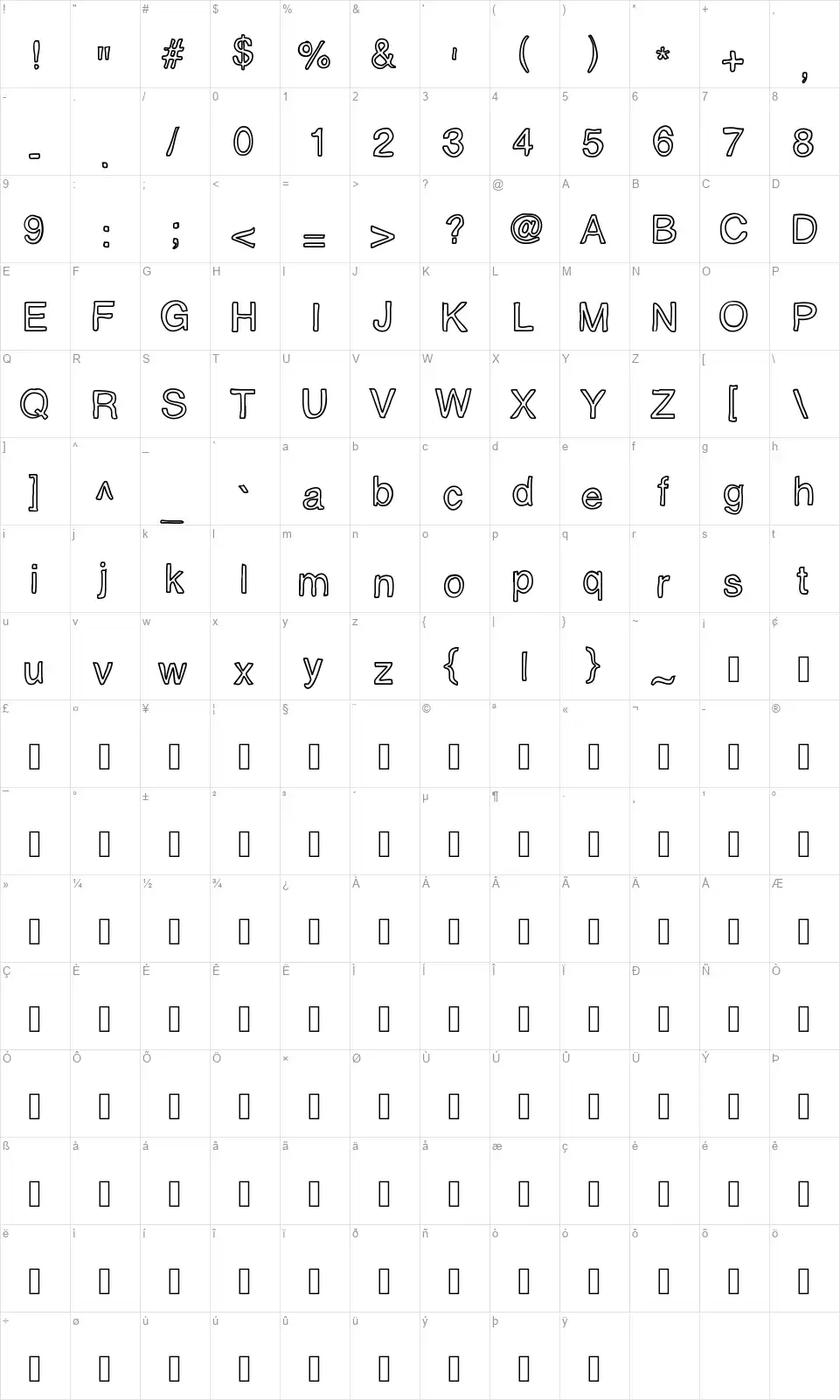 - Mappa dei caratteri