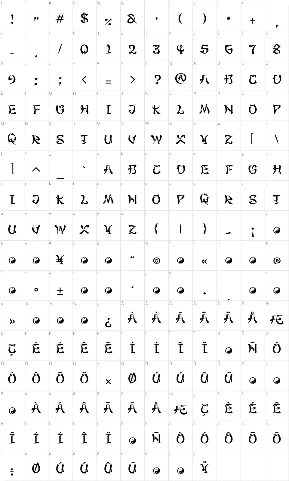 - Mappa dei caratteri