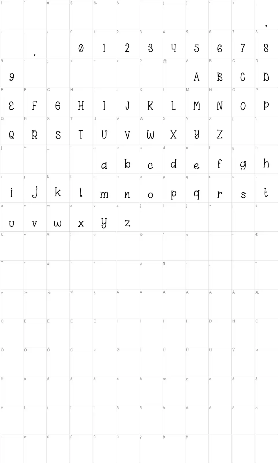 Esemplari Cascata Mappa dei caratteri