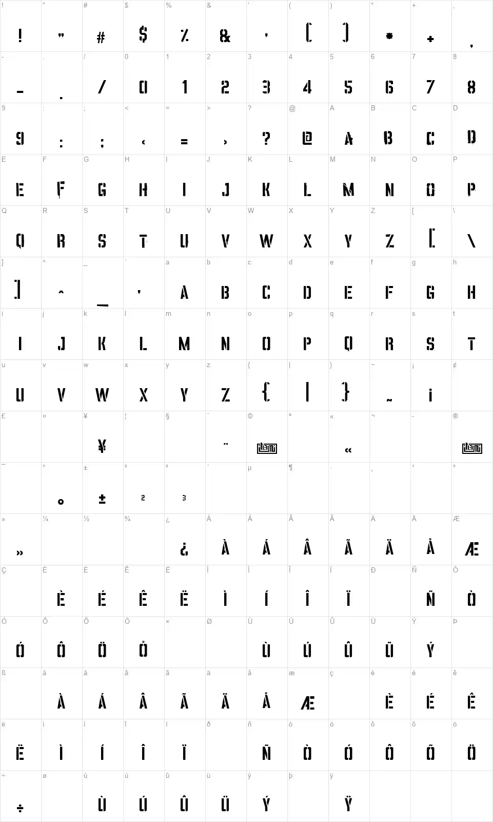 Carattere Vinca Stencil